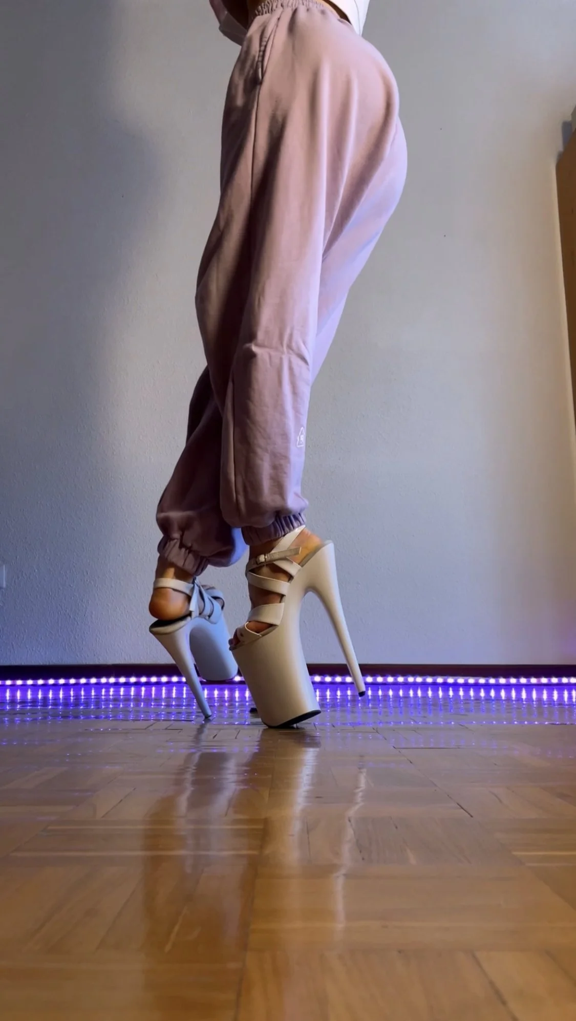 You will need stripper heels, I recommend 8” but please prioritise comfort and safety, anything 7” or higher will work fine. Sandals work best, but boots are also ok. Occasionally you might need kneepads too. You will need a pole, an electronic device to watch the class (please make sure I can see as much of you as possible) and I super recommend having your phone nearby to film yourself with so you can remember and practice class content outside the classes.
